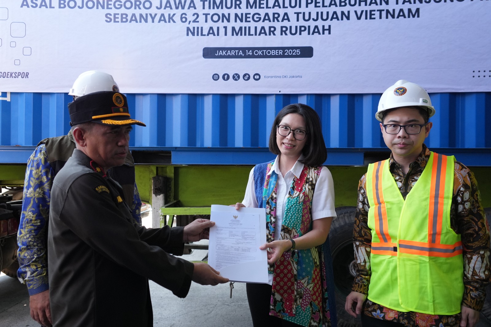 Kepala Badan Karantina Indonesia, Sahat Manaor Panggabean, menjelaskan bahwa kegiatan ini mencerminkan peran Barantin dalam mendukung Asta Cita Presiden Prabowo Subianto, khususnya dalam melanjutkan hilirisasi dan industrialisasi untuk menambah nilai produk domestik, sekaligus mendorong pemerataan ekonomi serta pemberantasan kemiskinan. “Badan Karantina Indonesia memastikan produk ekspor Indonesia memenuhi standar dan protokol negara tujuan. Kami terus memberikan edukasi kepada pelaku usaha agar proses ekspor berjalan lancar dan berkelanjutan,” ujar Sahat saat acara di Terminal Pemeriksaan Fisik Terpadu (TPFT) CDC Banda, Pelabuhan Tanjung Priok, pada Selasa (14/10).