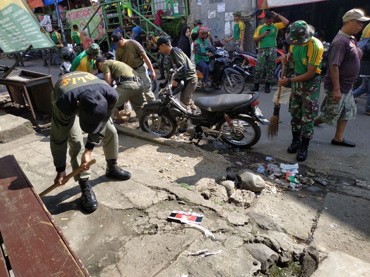 “Para prajurit bersama warga dan instansi terkait melakukan pembersihan dipinggir jalan dengan membersihkan tanaman yang mengganggu, sampah dan kotoran lain di kiri dan kanan jalan Raya Bogor,’’ ujarnya.