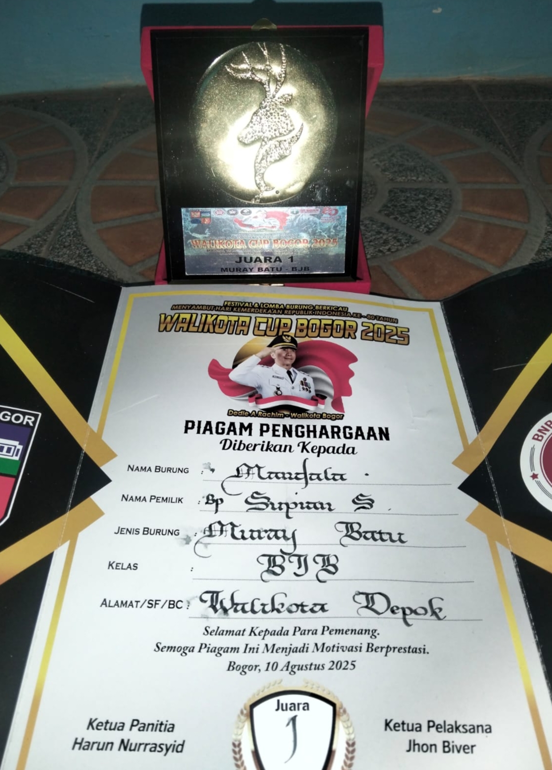 Burung murai batu milik team Squad SC Kota Depok berhasil menorehkan prestasi gemilang dengan menyabet juara umum, menariknya salah satu yang berhasil raih Juara burung berkicau milik Walikota Depok H. Supian Suri.