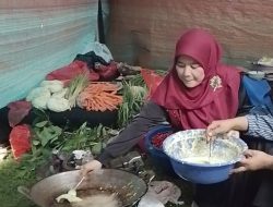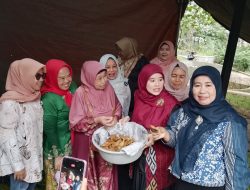 Ketua Tim PKK Kota Depok, Hj. Siti Barkah Hasanah atau Cing Ikah sama Mpok Nina Sekda Kota Depok lagi goreng ikan asin kepada pengunjung saat menghadiri Lebaran Depok di kawasan Cilodong Kota Depok.