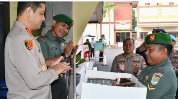 Dirinya menuturkan, rombongan Kodim Depok hadir membawa tumpeng dan kue ulang tahun sebagai simbol penghormatan dan dukungan terhadap Polri.