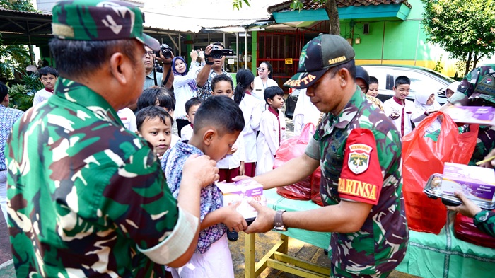 Danrem 051/Wkt dan Irdam Jaya Ikuti Vidcon Bersama Panglima TNI Launching Satuan Pelayanan Pemenuhan Gizi di SDN 03 Pagi Cijantung