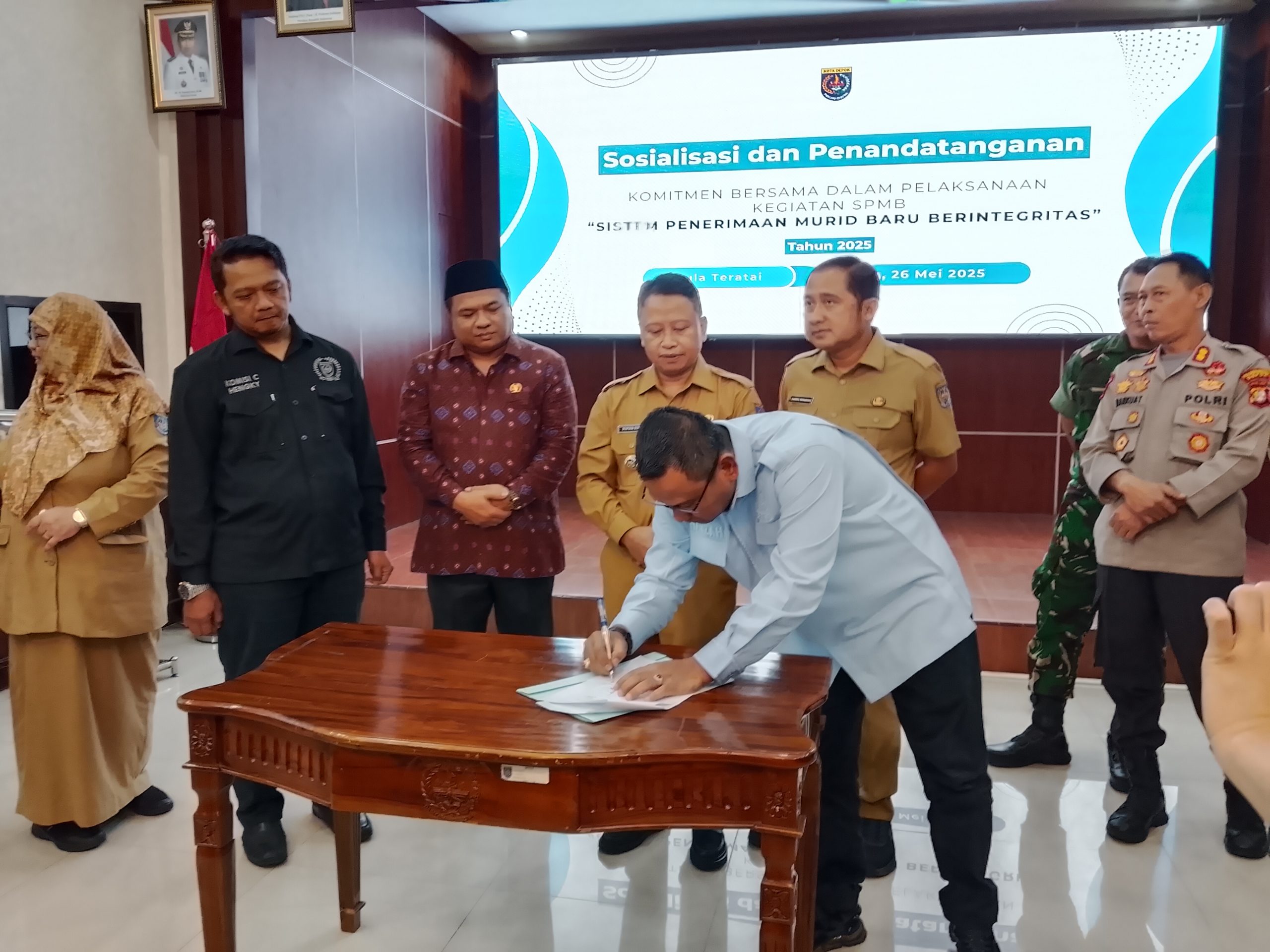 Dalam acara tersebut, sejumlah pihak, termasuk unsur pemerintahan dan DPRD, menandatangani komitmen untuk mengawal jalannya proses penerimaan murid baru di sekolah negeri.