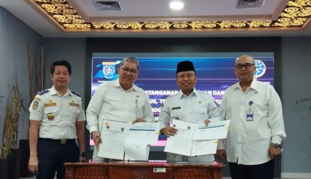 Pemerintah Kota Depok menandatangani Perjanjian Berita Acara Serah Terima (BAST) Hibah Halte Bus, Tempat Pemberhentian Bus, dalam pendukung program BTS, di Ruang Edelweis Lantai 5 Balaikota Depok, Kamis (4/9/2025).