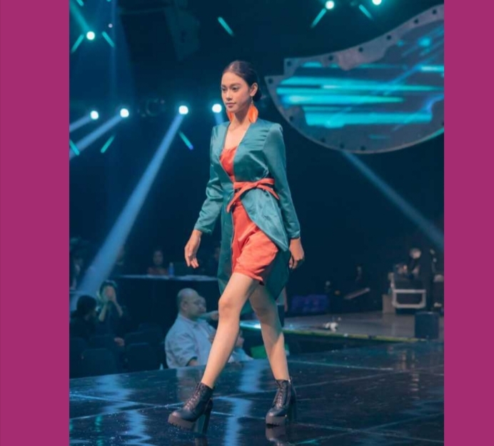 Ia berjalan anggun di atas catwalk. Perpaduan warna, motif, dan gaya yang ditampilkan seolah menyampaikan pesan kuat: budaya lokal bisa tampil membanggakan di panggung internasional,