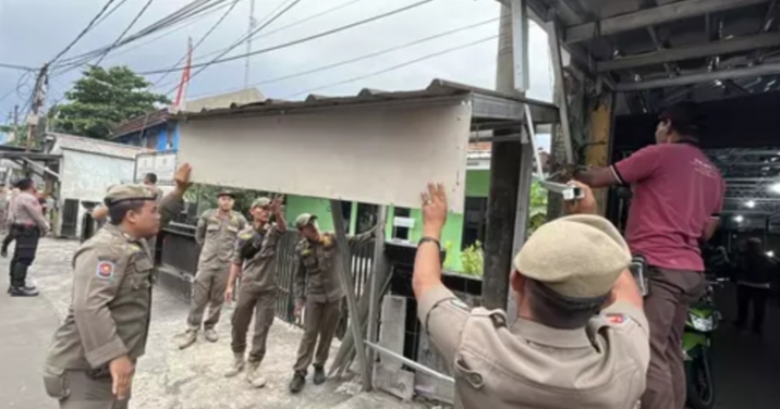 Satuan Polisi Pamong Praja (Satpol PP) Kota Depok membongkar sejumlah bangunan liar yang berdiri di sepanjang jalan menuju Stasiun Depok, Kecamatan Pancoran Mas, Kota Depok, pada Rabu (12/11/2025). pekan yang lalu.