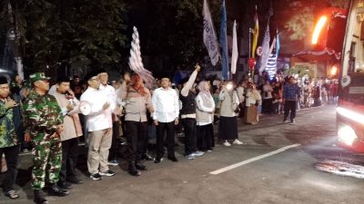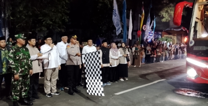 Walikota Depok yang diwakili Kabag Kesra setda Kota Depok Iyai Gumilar, didampingi Kepala Kementerian Agama dan Umroh H. Fauzan, secara resmi melepas keberangkatan rombongan jamaah haji menuju Tanah Suci.