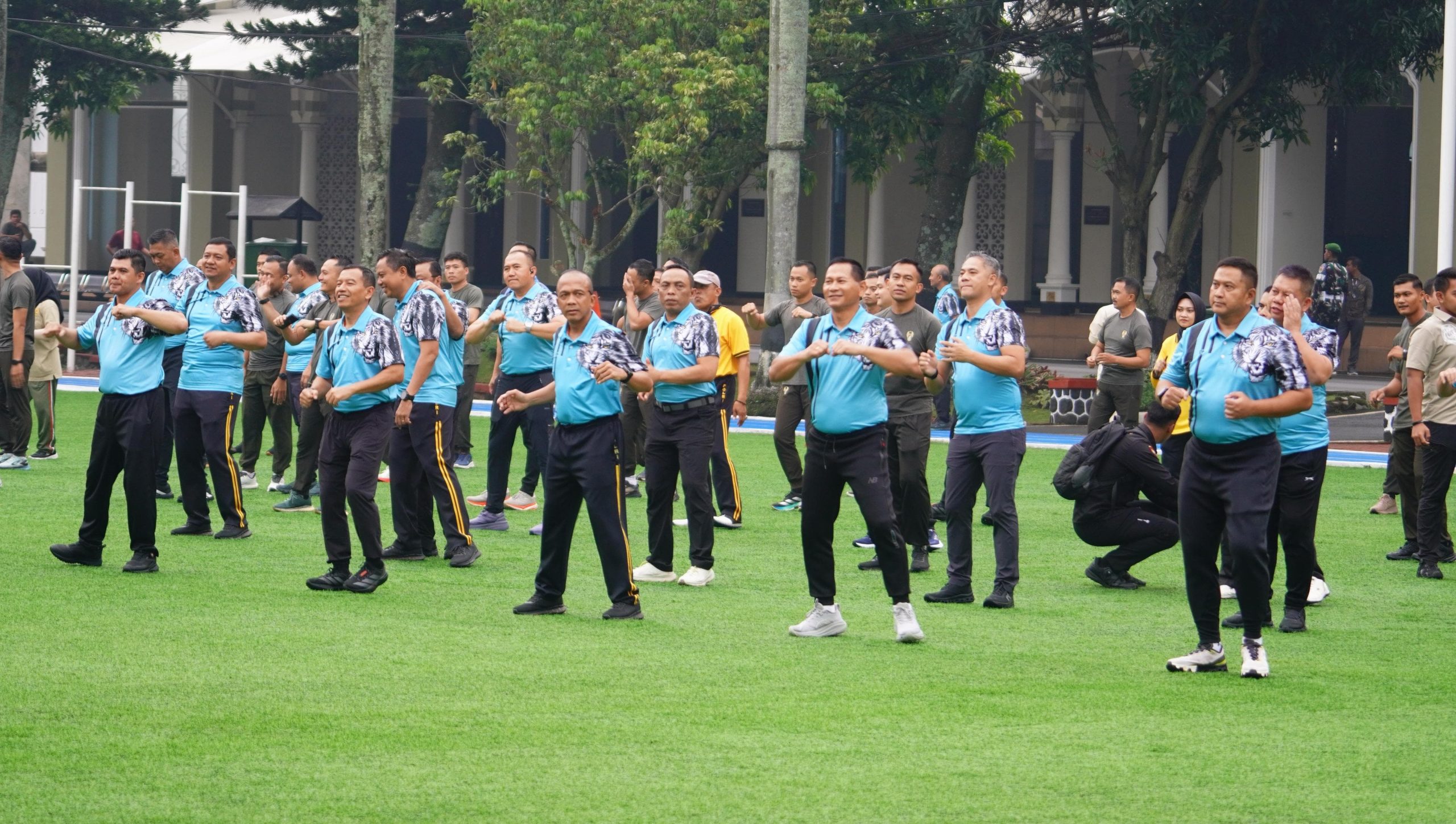 Ratusan personel gabungan dari jajaran Kodam III/Siliwangi dan Polda Jabar tampak membaur mengikuti rangkaian senam pemanasan, olahraga ringan, hingga jalan santai mengelilingi area Makodam III/Siliwangi.