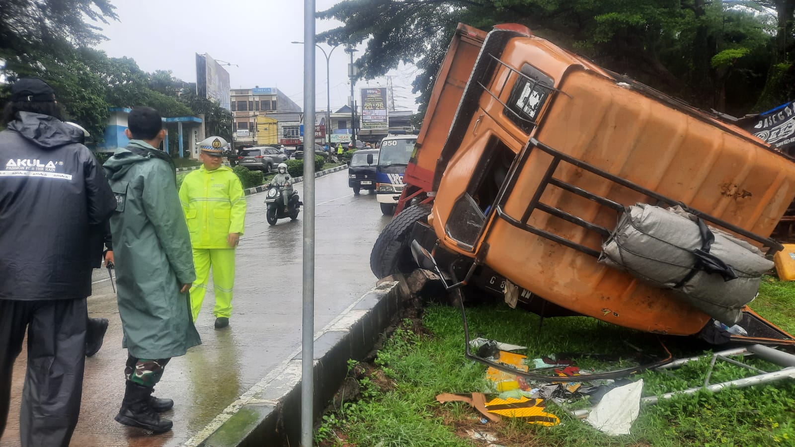Berdasarkan informasi di lapangan, kecelakaan bermula sekitar pukul 07.00 WIB ketika truk bernomor polisi G 8893 WW melaju menuruni jalan di kawasan GDC. Diduga kendaraan mengalami rem blong, sehingga pengemudi kehilangan kendali dan truk akhirnya terperosok ke bahu kiri jalan.