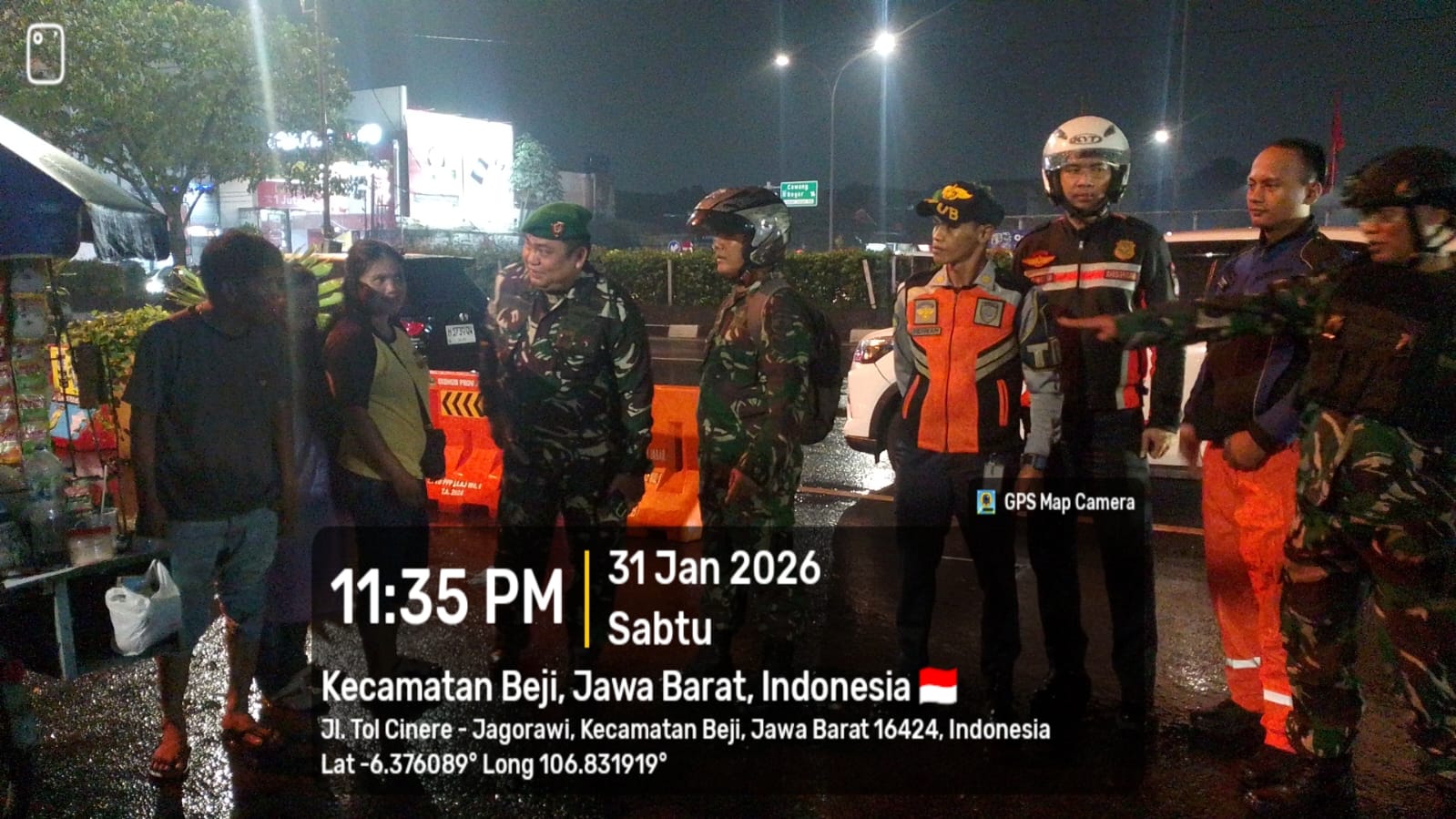 Kegiatan patroli yang dimulai pukul 21.00 WIB hingga selesai tersebut dipimpin oleh Danru Kapten Inf Arpin Gumay, selaku Wakil Komandan Rayon Militer (Wadanramil) 02/Beji. Patroli melibatkan 5 personel Koramil yang bersinergi dengan 4 personel mitra sebagai bentuk soliditas TNI–Polri dalam menjaga stabilitas keamanan wilayah.