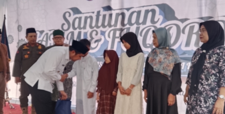 Kemudian, acara yang ditunggu-tunggu tiba, puluhan anak yatim dan fuqoro tersebut diberikan santunan uang tunai dan bingkisan.