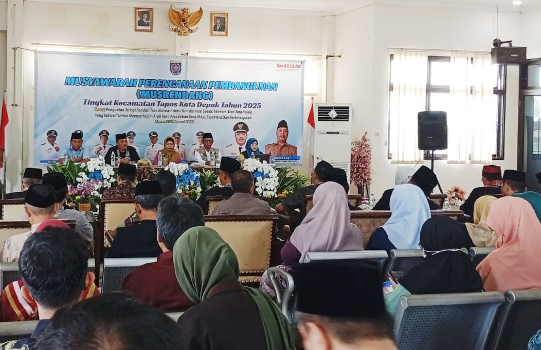 Musyawarah Perencanaan Pembangunan (Musrenbang) tingkat Kecamatan Tapos tahun 2025 resmi digelar di Aula Kecamatan Tapos. Mengusung tema “Penguatan Teologi sebagai Pondasi Transformasi Sosial, Ekonomi, dan Tata Kelola yang Inklusif untuk Mempertajam Arah Kota Peradaban yang Maju, Sejahtera, dan Berkelanjutan”, acara ini menjadi momentum penting dalam merumuskan pembangunan di wilayah Tapos.