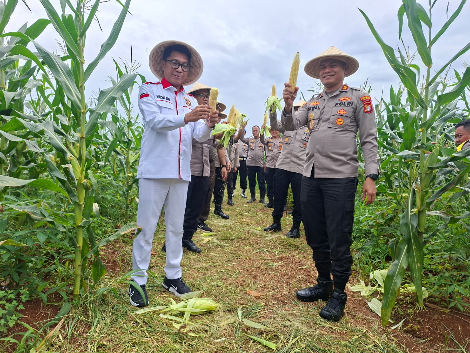 Polres Metro Depok melaksanakan Panen Raya Jagung serentak Kuartal IV Tahun 2025 di lahan terbuka Perumahan Billabong, Blok G3, Desa Cimanggis, Kecamatan Bojonggede, Kabupaten Bogor, Kamis (8/1/2026). Kegiatan ini menjadi bagian dari gerakan nasional panen raya yang digelar serentak di seluruh Indonesia.