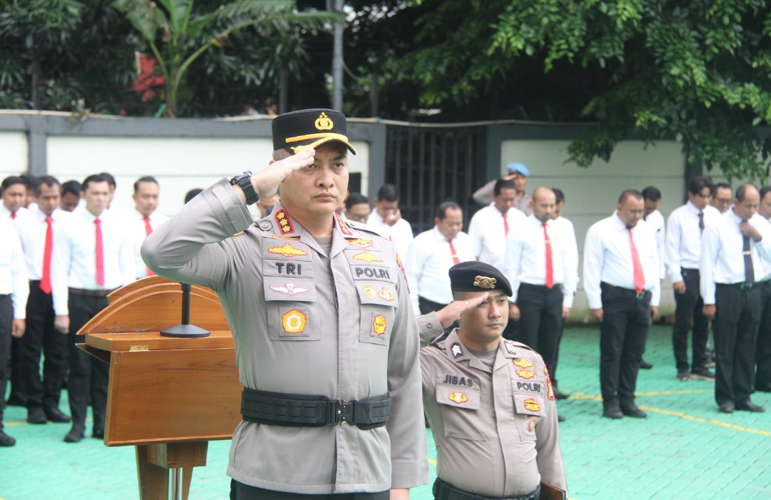 Wakapolres Metro Jakarta Barat Kombes Pol Dr. Tri Suhartanto, SH, MH, M.Si., Ph.D. bertindak sebagai inspektur upacara dan memimpin langsung kegiatan.