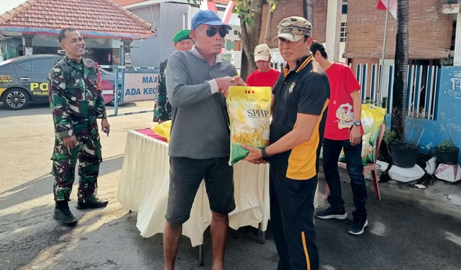 Warga Desa Sawohan, Kecamatan Buduran, mendapat kesempatan membeli beras dengan harga terjangkau melalui program Gerakan Pangan Murah yang digelar Polsek Buduran bersama Koramil Buduran, Jumat (15/8/2025).