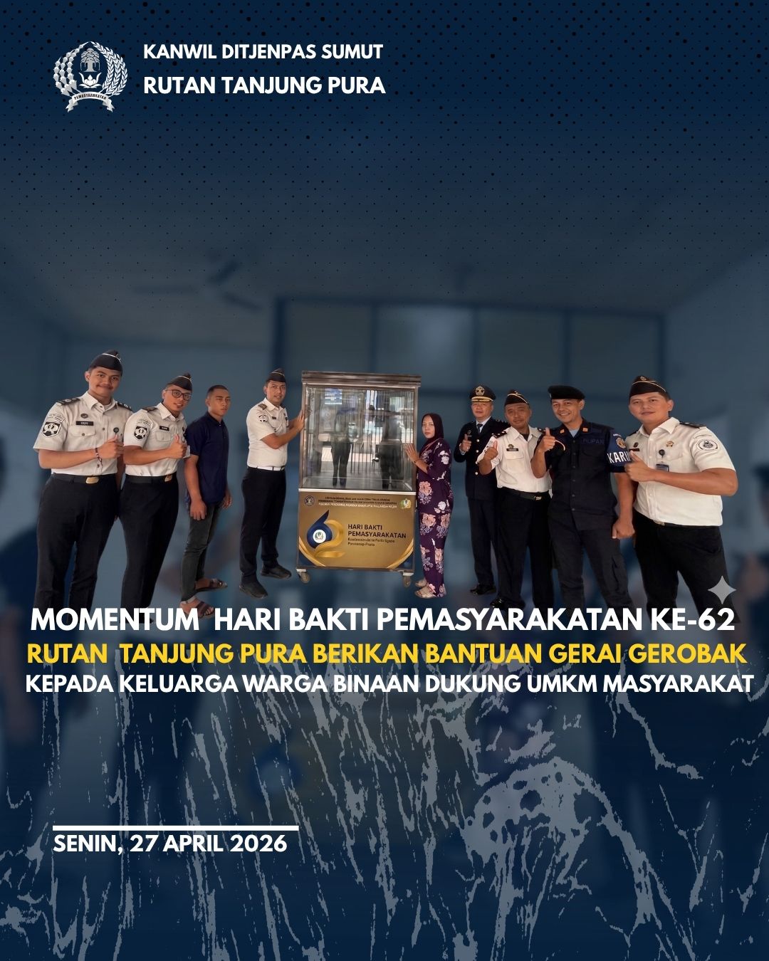 Rumah Tahanan Negara (Rutan) Kelas IIB Tanjung Pura menyalurkan bantuan gerai gerobak usaha kepada keluarga warga binaan sebagai upaya mendorong kemandirian ekonomi dan penguatan sektor usaha mikro, kecil, dan menengah (UMKM), bertepatan dengan peringatan Hari Bakti Pemasyarakatan ke-62, Senin.