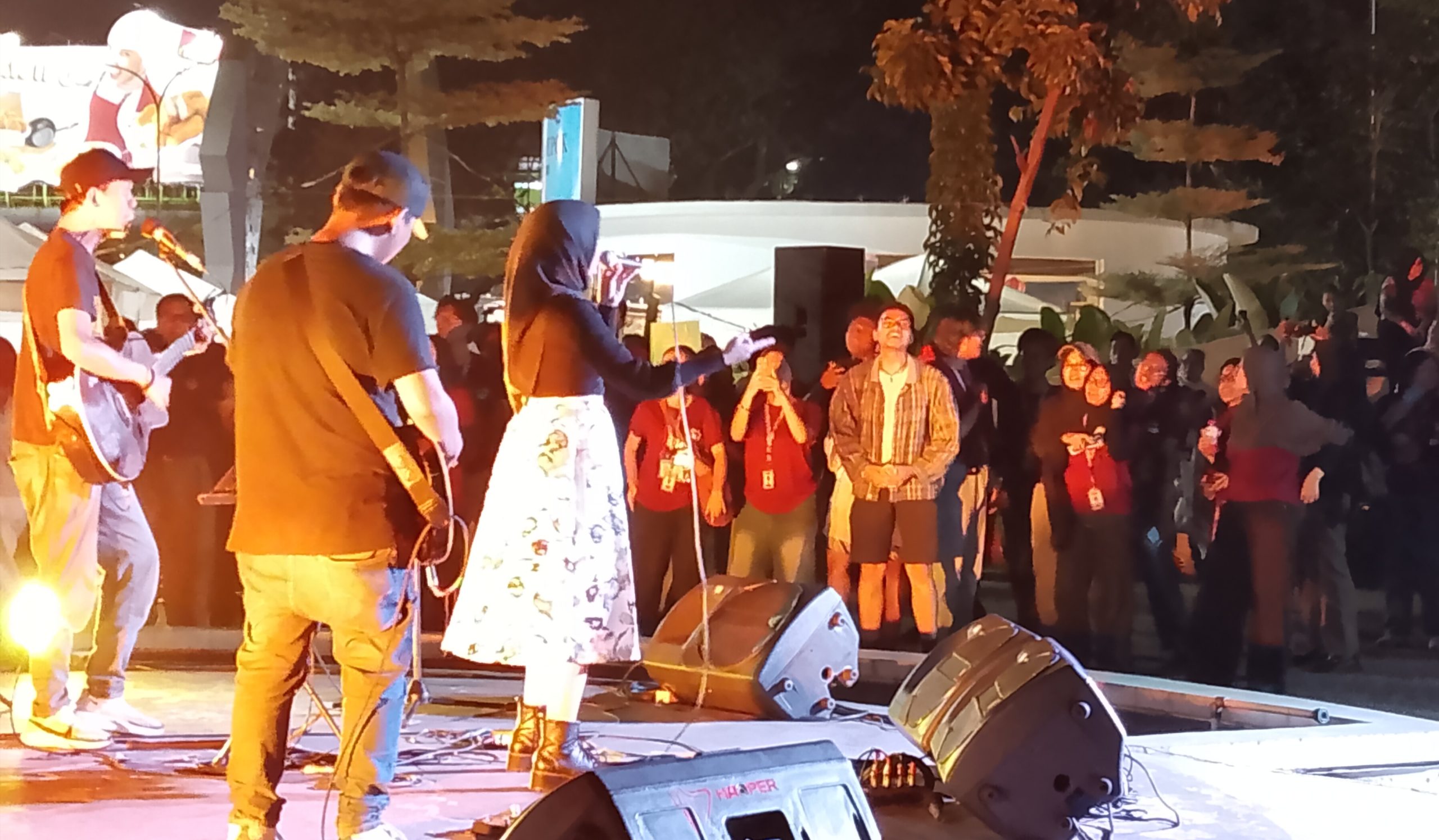 Seniman Jalanan atau ‘Sejalan’ 2025 menampilkan panggung musik di festival musik jalanan di Depok Open Space (DOS), Jalan Margonda Raya, Kota Depok pada Sabtu (11/10/2025) malam. Penonton dimalam itu sangat ramai dan menikmati alunan musik yang dibawakan oleh grup musik jalanan.