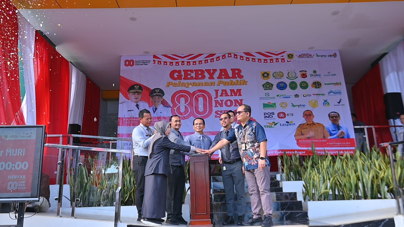 Pelayanan publik tanpa henti selama 80 jam ini sekaligus ditargetkan meraih rekor MURI (Museum Rekor Dunia Indonesia) sebagai pelayanan publik terlama yang digelar secara berkesinambungan.