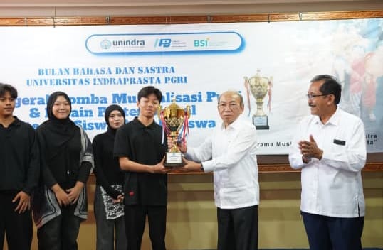 Penyerahan hadiah dan penghargaan bagi para pemenang Lomba Musikalisasi Puisi dan Lomba Pembuatan Poster Digital menjadi puncak rangkaian Bulan Bahasa dan Sastra 2025 yang diselenggarakan oleh Lembaga Pengembangan Bahasa (LPB) Universitas Indraprasta PGRI (Unindra) Jakarta.