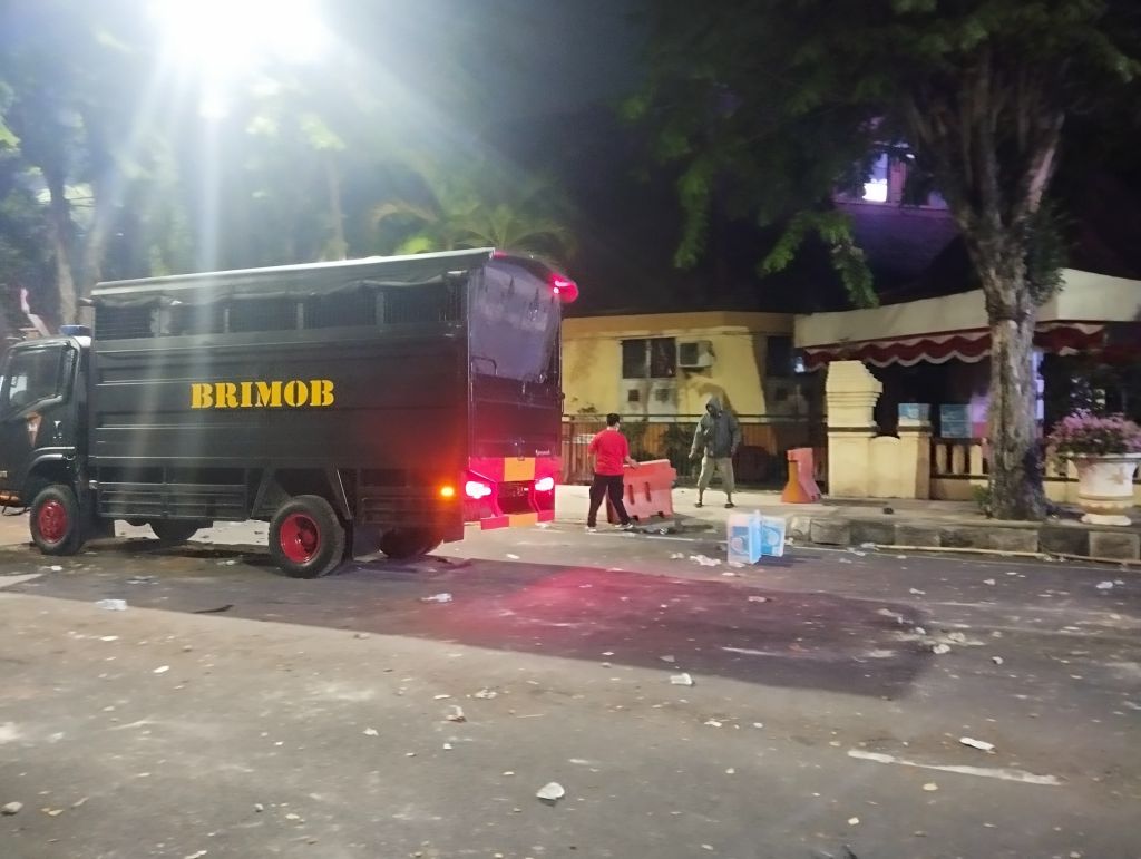 Menjelang tengah malam, massa masih terpantau di sekitar Jalan Darmo. Identitas mereka belum jelas. Namun satu hal pasti, Surabaya belum benar-benar tenang. Di Markas Polda Jatim, ratusan personel bersiaga, barisan tameng berlapis, mengantisipasi gelombang berikutnya.