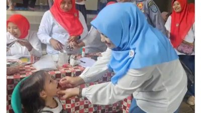 Depok || Radarpost.id Ketua TP-PKK Kecamatan Bojongsari, Novi Susanti saat ikur memberikan langsung vitamin A…