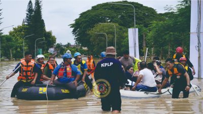 Banjir Bekasi Meluas, Quick Respon Tim Pangkalan KPLP Tanjung Priok, Ditjen Hubla Kemenhub, Gerak Cepat Evakuasi Warga di Kemang Pratama Jati Asih