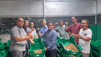 Depok || Radarpost.id Lurah Kukusan, Abdul Manan menunjukkan maggot hasil budidaya warga, di Jalan Palakali…