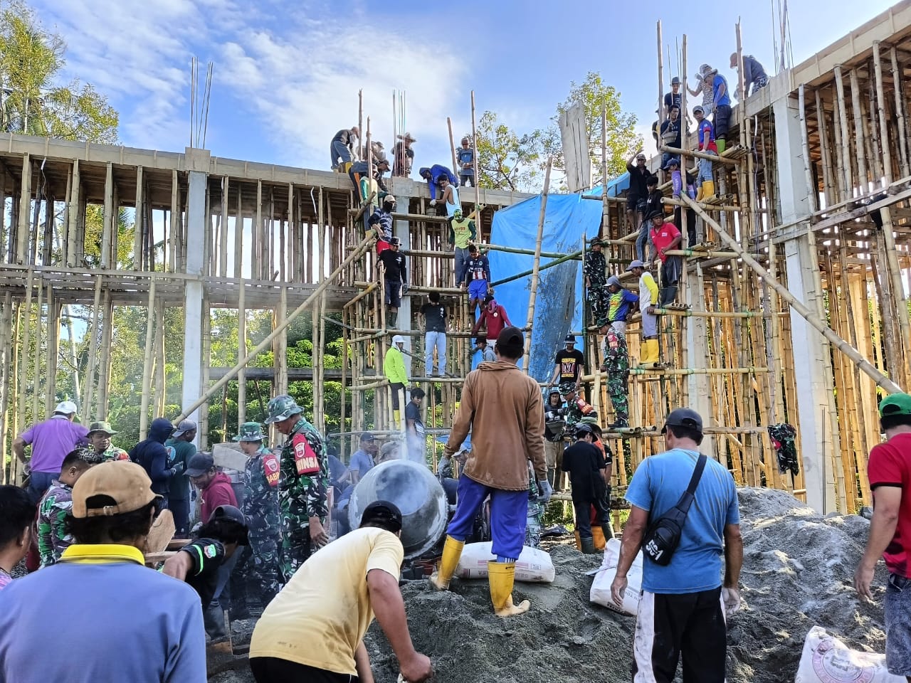 Kegiatan ini dipimpin oleh Danramil 1412-05/Pakue, Kapten Inf Sudarto, dan menjadi bukti nyata kepedulian TNI dalam mendukung pembangunan fasilitas ibadah serta mempererat kemanunggalan antara TNI dan rakyat.